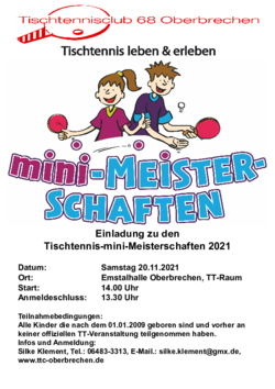Einladung zu den Tischtennis-mini-Meisterschaften 2021
